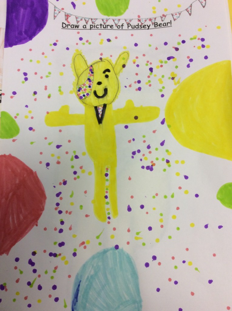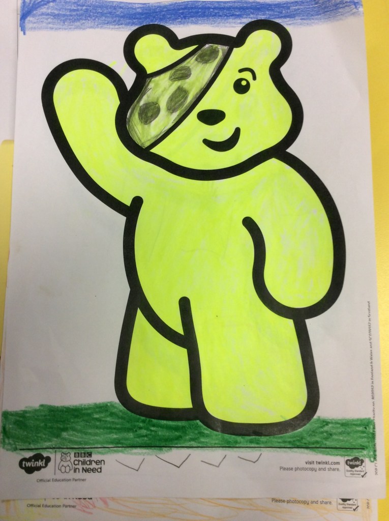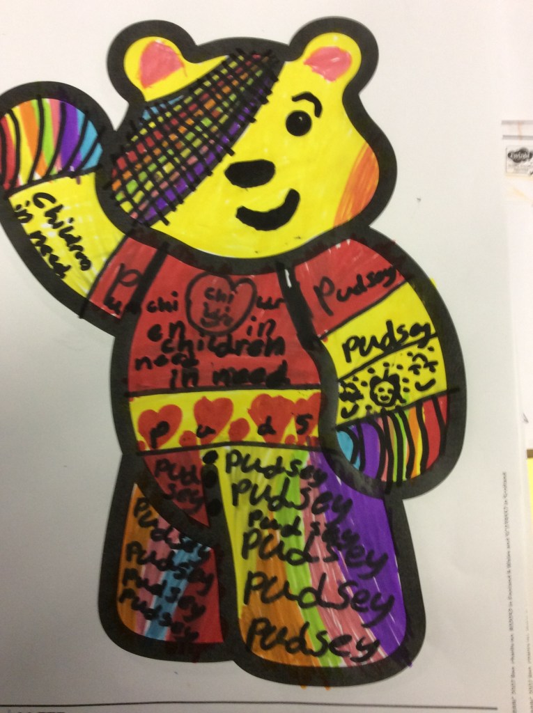 As part of our Children In Need celebrations this year we held a Pudsey Bear art competition in the Primary School. P1-3 children were asked to colour in a picture of Pudsey, whilst P4-7 were asked to put their drawing skills to the test and draw their won Pudsey!